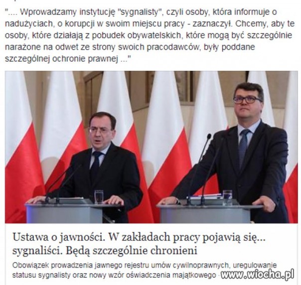 «Мы вводим институт «сигнальщиков», то есть лиц, которые информируют о злоупотреблениях, о коррупции на своём рабочем месте. Мы хотим, чтобы эти лица, которые действуют из гражданских соображений и могут подвергнуться мести со стороны работодателя, подлежали правовой защите».