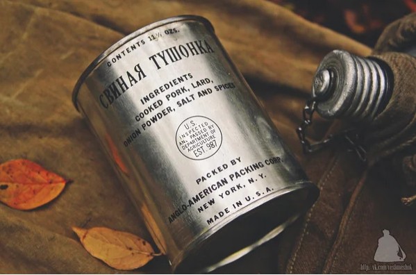 Тушенка была очень качественная. На войне ее даже называли "второй фронт". Производились консервы из 100% свинины высшего сорта.