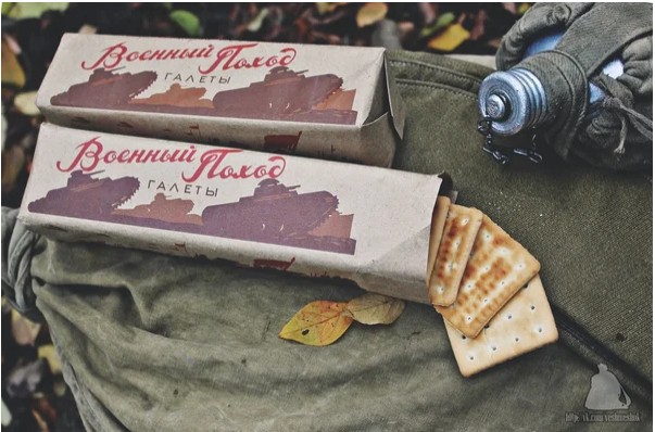 Абсолютно пресные, но питательные галеты использовались как заменитель хлеба. Производителем числится "Наркомпищепром СССР Главспирт". На упаковке присутствовала инструкция, согласно которой, перед употреблением галеты рекомендовалось размочить в теплой воде.