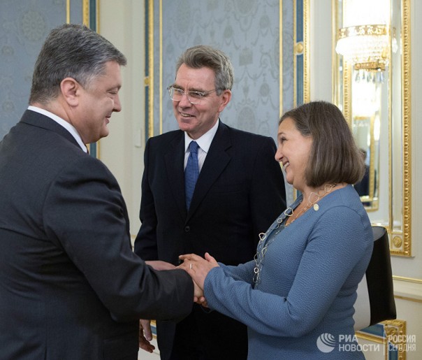Президент Украины Петр Порошенко, посол США на Украине Джеффри Пайетт, помощник государственного секретаря США по вопросам Европы и Евразии Виктория Нуланд в Киеве. 2015 год