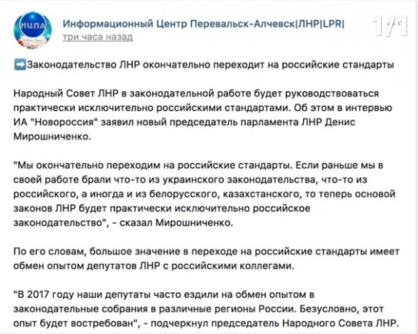 Теперь же так называемые "власти ЛНР" официально заявили, что будут полностью подгонять свое "законодательство" под российские стандарты. И это точно не приближает реинтеграцию с Украиной.