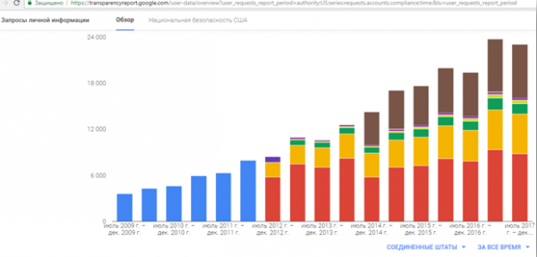 Это жутчайший тотальный контроль на благо спецслужб, несмотря на оправдание корпорации о том, что сбор данных нужен для улучшения работы поисковика. Стоит только взглянуть на официальный отчет о запросах американских властей по поводу раскрытия персональных данных пользователей.