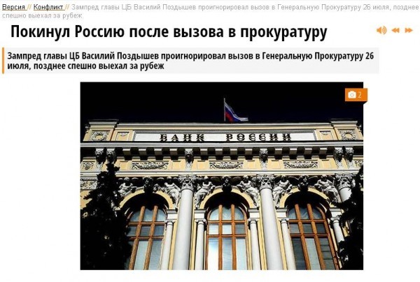 К заместителю председателя Центробанка Василию Поздышеву у правоохранительных органов накопилось много вопросов. В частности, в прокуратуру были поданы заявления от миноритарного акционера банка «Югра» Алексея Коршунова и главного бухгалтера того же банка Ольги Ириневич. По их словам, банк «Югра» оказался с минусовым балансом и был лишён лицензии не случайно.