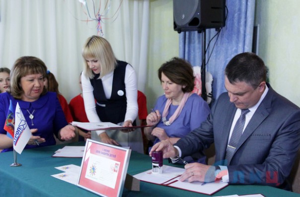 Исполняющий обязанности главы ЛНР Леонид Пасечник принял участие в специальном гашении и презентации художественного маркированного конверта "1 июня – День защиты детей". Об этом из Луганского детского дома № 1, где состоялось гашение, передает корреспондент ЛИЦ.