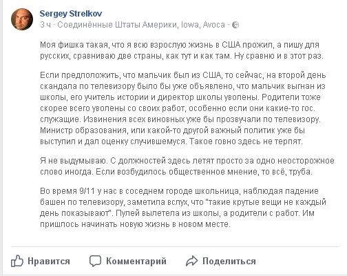 "Россия — кровожадная ксенофобская страна, в которой почти 40% населения готовы перестрелять всех, кто виноват в текущем положении дел. 70% русских признали, что испытывают неприязнь к людям других национальностей, 40% русских одобрили бы насильственное выселение представителей других национальностей из своего населенного пункта".