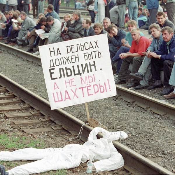 Суровым шахтёрам в ту пору было не до царей. Им жрать было нечего. Кстати обратите внимание на бутылку рядом с метафизическим ЕБН. Репутация у него всегда было алкоголика. Зря из него пытаются сейчас лепить положительного персонажа. Он обычный человек был со своими пороками и слабостями.