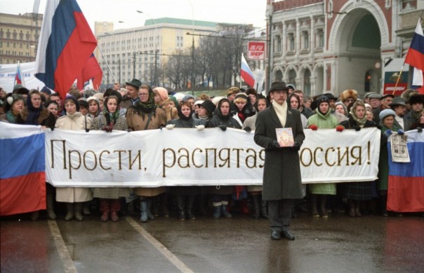 Москва. 1991 год. Поклонники творчества Николая Второго.