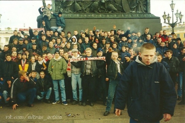 Футбольные фанаты. Тоже еще то явление. Судя по шмоткам это самый конец 90-х.