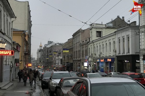 Сумская улица — одна из центральных улиц Харькова, излюбленное место для променада у харьковчан. Власти города сохранили на проезжей части брусчатку и для поднятия духа патриотизма украсили всю улицу национальными желто-синими флагами.