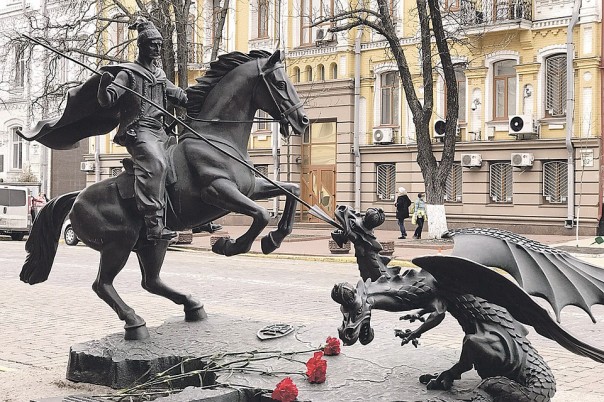 У здания СБУ не так давно появился удивительный памятник - двуглавый Змей-горыныч ползет с востока на казака с копьем, который оберегает Украину. Композиция настолько удивительна, что даже местные жители останавливаются и неподдельным интересом пытаются разгадать зашифрованные тут послания.