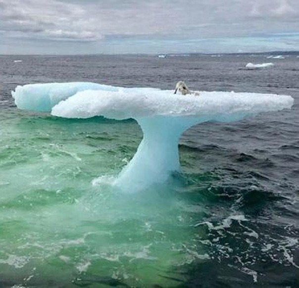 На айсберге в форме гриба был невольный пассажир. Экипаж сначала подумал, что это был детёныш тюленя. Но как оказалось, на айсберге дрейфовала арктическая лиса. «Вероятно, она застряла там в поисках еды», — сказал Мэллори Харриган