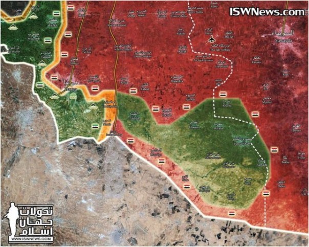 09.00 Армия Сирии на границе: военные обустраиваются в районе КПП «Нейсиб» вблизи территории Иордании. Ранее, боевики «умеренной оппозиции» оставили данный стратегически важный район, куда теперь стягиваются сирийские военные. Стоит отметить, что САА утратила контроль над границей с Иорданией 4 года назад и до недавнего времени КПП использовались боевиками для получения помощи с иорданской стороны.