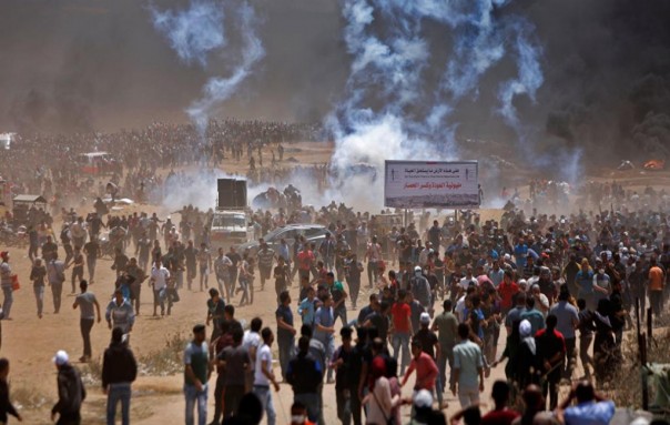 12.40 Армия Израиля разогнала группу протестующих из сектора Газа. По информации ряда источников, в ходе разгона было применено боевое оружие. В заявлении, опубликованном министерством Здравоохранения Газы, говорится, что число граждан, получивших ранения составляет 396 человек. Не менее 57 человек получили пулевые ранения, что было особо зафиксировано. Как минимум один из пострадавших скончался от полученного пулевого ранения в голову.