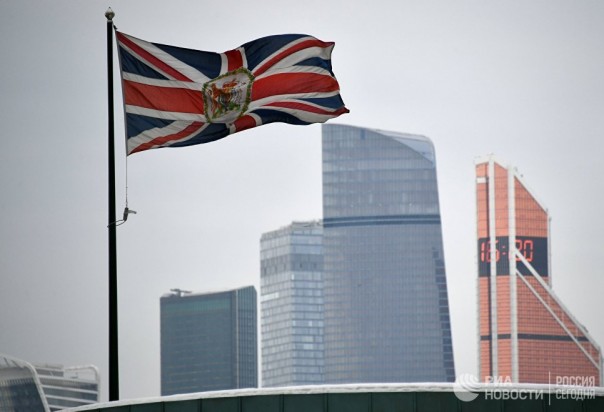 Флаг Соединенного Королевства на здании посольства Великобритании в России, в Москве