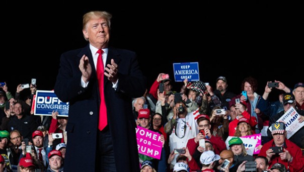 Первый: Трамп пытается убедить аудиторию в том, что в американской экономике все настолько прекрасно и что она растет настолько сильно, что все, включая Владимира Путина (о "прекрасной встрече" с которым говорил Трамп на том же митинге), хотят получить от США экономическую помощь.