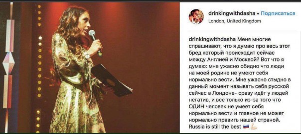 Даша, видимо, получив гневный звонок от папы, удалила пост. Что, впрочем, подтвердило, что она не русская, так как русские не сдаются.