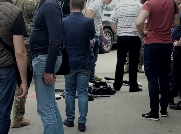 "На месте происшествия сейчас находятся сотрудники СБУ, прокуратуры и патрульной полици. На асфальте возле остановленного джипа лежит оружие – предположительно винтовка М16, дробовик и пистолет Макарова, а также патроны и транзитные автомобильные номеры красного цвета", – говорится в сообщении.