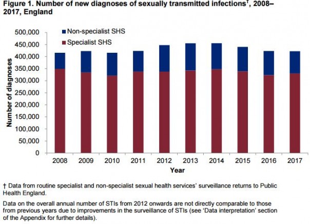 В 2017 г. в Англии зарегистрировано 422 147 новых диагнозов ЗППП.