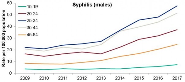 Сегодня Министерство здравоохранения Британии опубликовало доклад с обновлёнными данными по заболеваниям передающимся половым путём (ЗППП). Главной сенсацией стал рост числа новых диагнозов сифилиса в Англии - в 2017 г. зарегистрировано 7137 случаев, что на 20% больше чем в 2016 г. - 5955. Традиционно, основной группой разносчиков сифилиса являются содомиты (мужчины имеющие половые контакты с мужчинами) - на их долю приходится 78% новых случаев заболевания. Также англичан одолевает гонорея - рост за год 22%. Ниже подробности и графики ЗППП по годам.