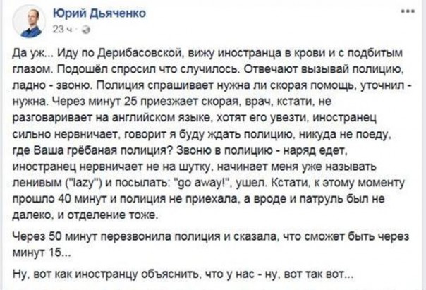 «Никуда не поеду, где Ваша грёбаная полиция?» — нервно возмущался избитый в Одессе американец.