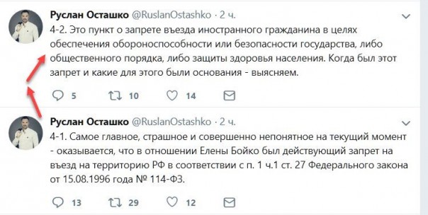 и которую отметил пользователь с ником OstankinoAntenna. Судя по скринам предоставленным этим пользователям, взятым с официального сайта мигр. ведомства РФ, Бойко выслали не за нарушение миграционного законодательства, а из-за того, что она представляла угрозу безопасности России, о чем и отмечено в графе причина высылки.