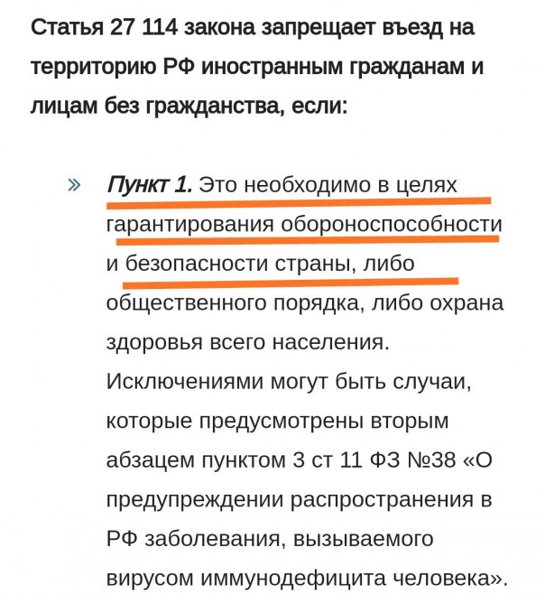 Статья 27. Въезд в Российскую Федерацию иностранному гражданину или лицу без гражданства не разрешается в случае, если: