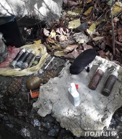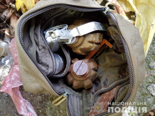 Накануне в Виннице посреди парка нашли схрон с боеприпасами. Две сумки с гранатами и другими боеприпасами лежали в пакете между бетонными блоками.