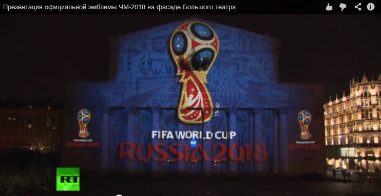 Сегодня в Москве будет представлена эмблема чемпионата мира по футболу 2018 года, который пройдёт в России. Официальные лица продемонстрируют её в прямом эфире Первого канала, одновременно она появится в виде световой проекции на фасаде Большого театра. RT ведёт прямую трансляцию из центра Москвы.