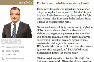 Есть мнение, что США сильно отвлекают сплотившиеся террористы из «Исламского государства». Если бы не они, Вашингтон мог бы обращать больше внимания на своего «давнего врага» — Москву. Россию ведёт по имперскому пути Владимир Путин. Это современный и образованный правитель, в прошлом советский разведчик и, «что необычно для россиян», — непьющий, считает историк Лайна Фархат-Хольцман.