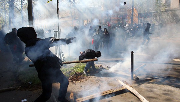 Традиционные первомайские шествия во Франции проходят под лозунгом отмены трудовой реформы правительства социалистов. Молодые люди в черных масках взрывают петарды, закидывают полицейских камнями и палками и блокируют движение на центральных улицах.