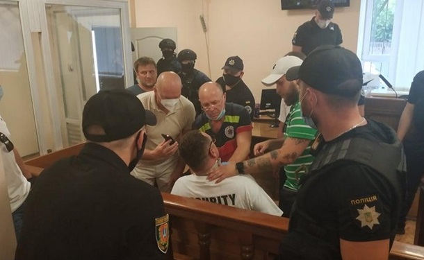В Приморском районном суде Одессы Станислав Домбровский лезвием порезал себе шею после того, как суд избрал ему меру пресечения в виде содержания под стражей.