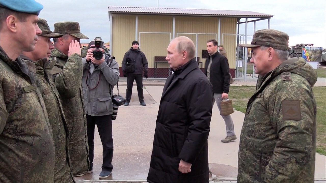 Владимир Путин и Сергей Шойгу прибыли сегодня на полигон в Рязанской области, где мобилизованные отрабатывают способы стрельбы в составе подразделений под руководством командиров и инструкторов.