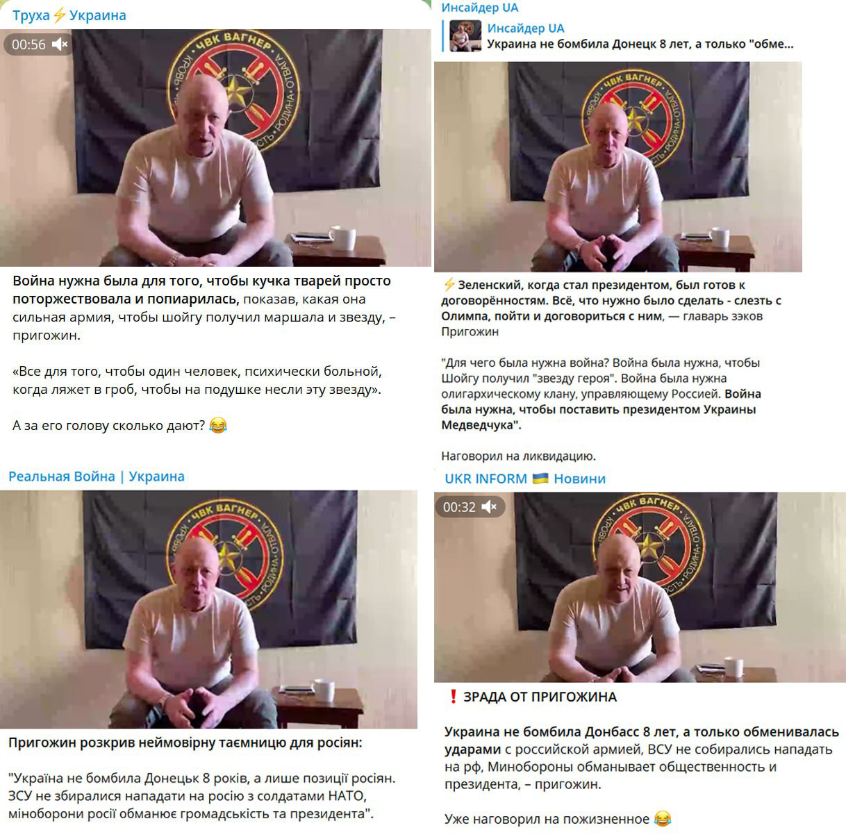 Все распространяемые в социальных сетях от имени Е.Пригожина сообщения и видеокадры о якобы «нанесении МО РФ удара по «тыловым лагерям «ЧВК «Вагнер», не соответствуют действительности и являются информационной провокацией.