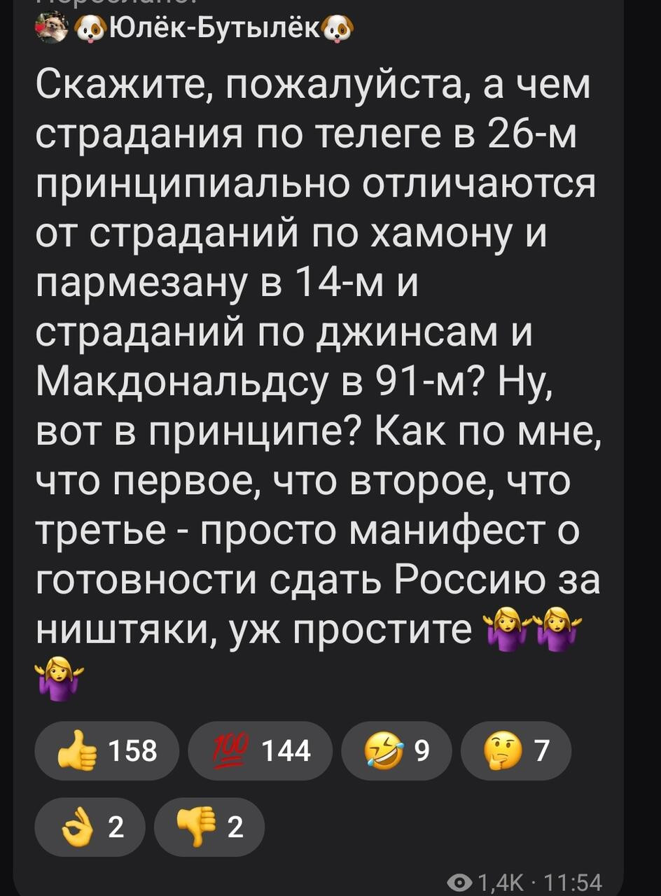 Вообще, конечно, очень забавно выглядит мышиная возня по сохранению доходов от раскрученных телеграм-каналов под эгидой, типа, «патриотизма» через рефрен «мальчиков на Фронте» (кстати, дайте денег), «нас не подолатi», с закономерным дрейфом к «владу геть».