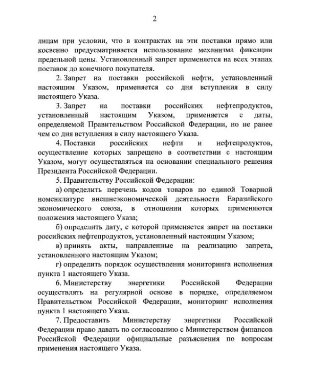 Президент может давать специальное разрешение на поставки нефти и нефтепродуктов, запрещенные по потолку цен.