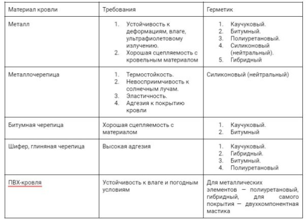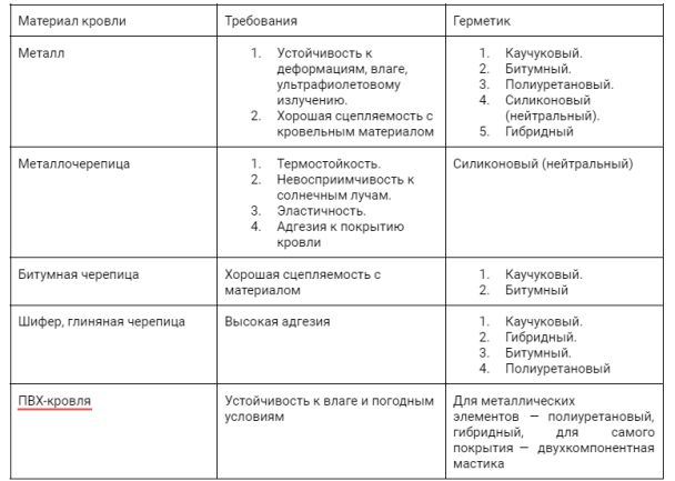 - Материал кровли. Для каждого типа покрытия применяют специально разработанные герметики.