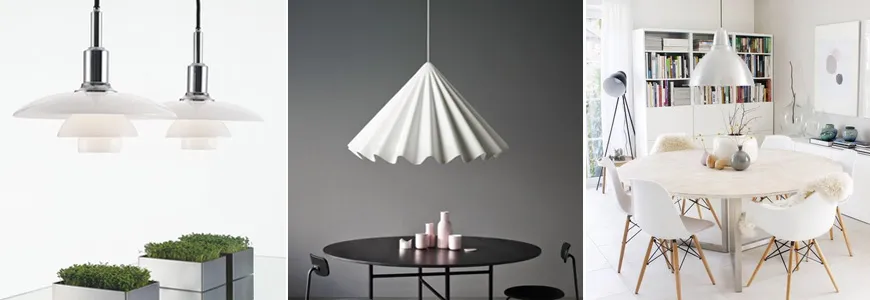 - Подвесные. Идеально подходят для столовых и кухонь. Они могут быть как простыми, так и дизайнерскими, но должны сохранять общую гармонию пространства.