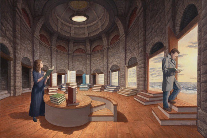 Сюрреализм и магический реализм — так можно назвать стиль, в котором рисует канадский художник Роб Гонсалвес (Rob Gonsalves). Он взял в руки кисточку в 12 лет и больше всего полюбил изображать архитектуру и работать с перспективой. В своих потрясающих картинах-иллюзиях Роб объединяет разные миры, которые, перетекая друг в друга, создают волшебные метаморфозы реальности. Так художник говорит нам, что всё в мире взаимосвязано.