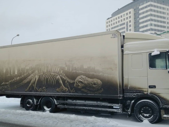 Московский художник увидел в слоях грязи, покрывающих автомобили, чистое полотно — и принялся создавать на нем удивительные картины.