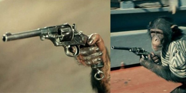 Современная методика дрессировки не предполагает таких жёстких методов, и нынешняя публика оружия у артистов не видит. Но кадры из чудесной комедии 1961 года «Полосатый рейс» наверняка памятны многим. Весьма эффектное с виду оружие, принадлежавшее трусливому дрессировщику, позже стащила ручная обезьяна — помните?