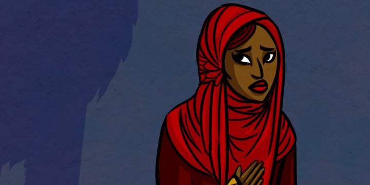 Когда он вошёл в глинобитный дом, женщина ткала ковёр. Горг ударил её, а тело завернул в ковёр и спрятал на заднем дворе, куда отвёл и своего коня. Сам он надел её абайю и никаб — так что были видны только его глаза. А свою одежду спрятал в сундуке. Затем зажёг масляную лампу и прилёг отдохнуть.
