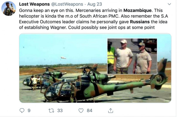 Для борьбы с местными боевиками, правительство Мозамбика нанимало как российскую ЧВК, так и южноафриканцев.