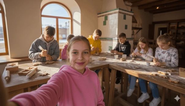 Самый популярный формат — мастер-класс по лепке из глины или создание народной куклы-оберега. Под руководством мастера ребенок за час сделает сувенир, который заберет с собой. Это отличный способ «заземлиться» после шумной прогулки по городу и переключить внимание на спокойное творчество.