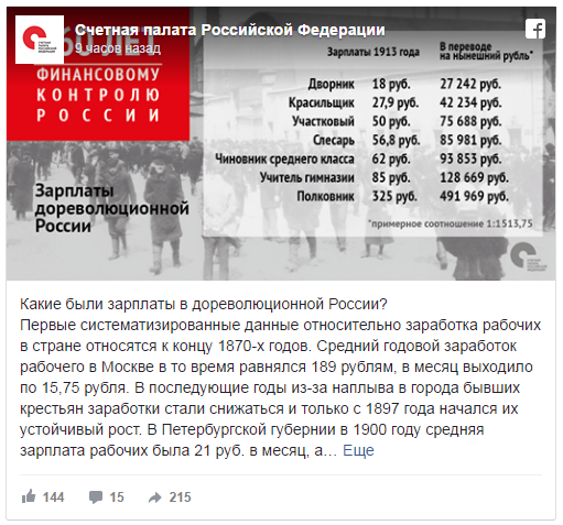 Счётная палата перевела зарплаты дореволюционной России в современные рубли