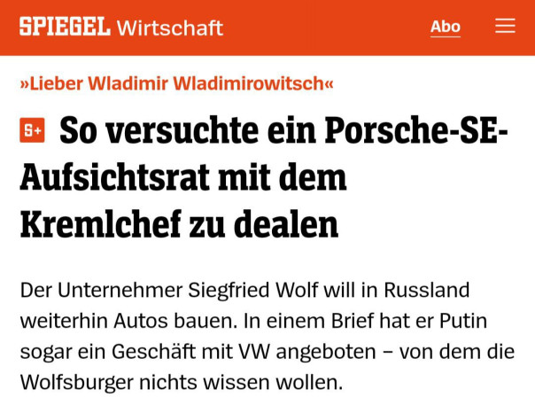 Один из самых влиятельных автопромышленников Европы Зигфрид Вольф написал трехстраничное письмо Владимиру Путину с предложением снова производить автомобили в России. Письмо начинается со слов «Дорогой Владимир Владимирович».