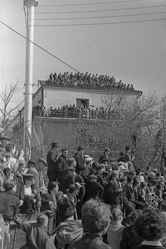 8. Москва встречает кубинского лидера толпами трудящихся с флагами и транспарантами. Ленинский проспект.