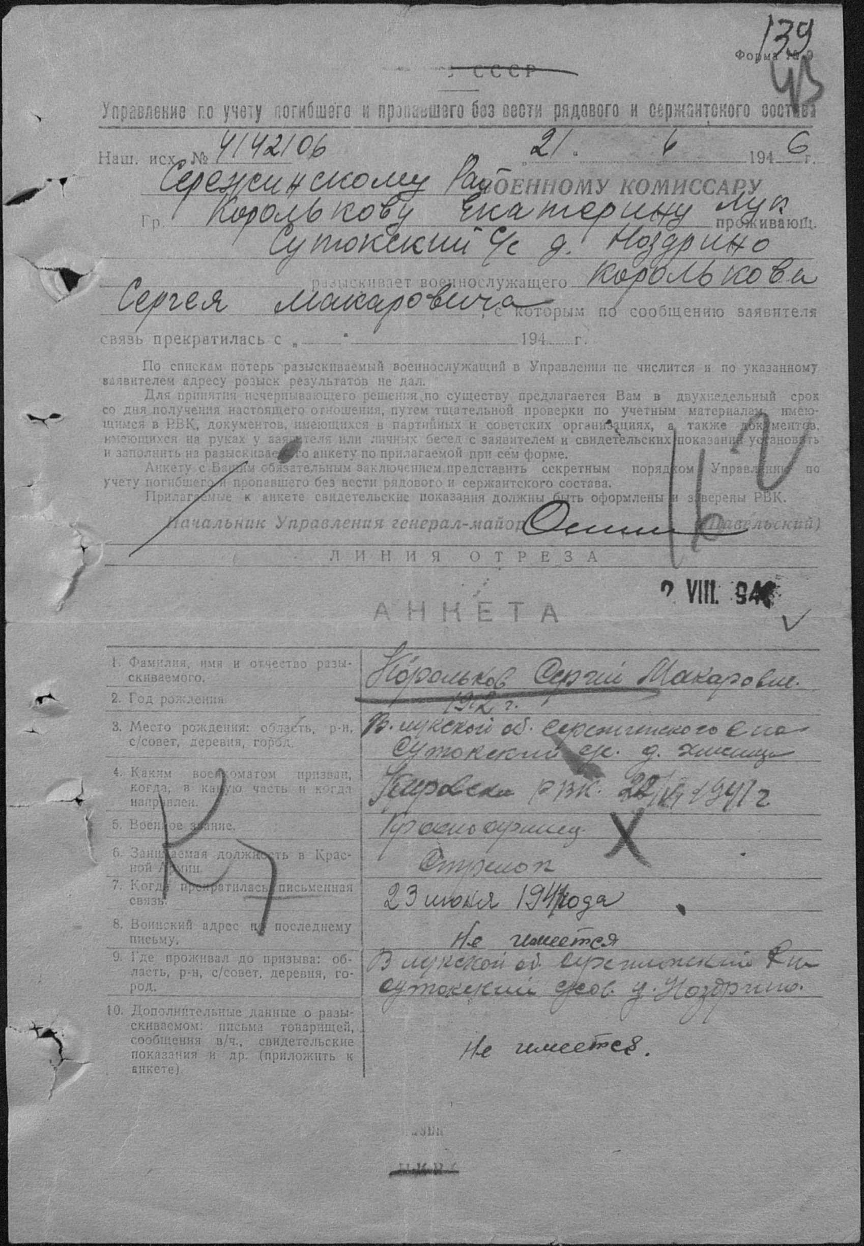 Его владелец теперь известен: Сергей Макарович Корольков. Тот, что в шинели на снимках. Служил он в хозвзводе, до войны жил в поселке Апатиты, работал на горнодобывающем предприятии. К началу войны уже обзавелся семьей, дочке шел третий год. Возможно, поэтому и заполнил свой медальон. Так поступали немногие.