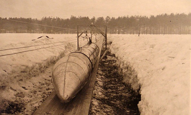 Ничего сенсационного по этому поводу сказать не получится. Нет, не прилетели марсиане, чтобы украсть секретные чертежи. И Гитлер не запретил из ревности Сталину реализовать проект, который по степени пафосности превосходил бы его собственные идеи имперского гигантизма. Все намного проще и прозаичнее: начали считать. И вот тут-то оказалось, что еще в ходе испытаний зимой 1932–1933 года были проблемы с расчисткой лоткового пути от снега и наледи, которые оставлять нельзя: поезд на огромной скорости улетит в пространство как с трамплина. А как снег и лед убирать на всем протяжении даже опытного 50-километрового пути? А если до Владивостока? Далее. Качество советской резины в 30–40-е годы прошлого века было, мягко сказать, не блестящим. Ее еще и не хватало, порой до половины грузовиков в автохозяйствах стояли «разутыми». А тут обрезиненные катки… И сколько резина на них прослужит под нагрузкой в десятки тонн на бетонных лотках? А как сделать бетонные стрелки? А во сколько миллионов это все выльется?