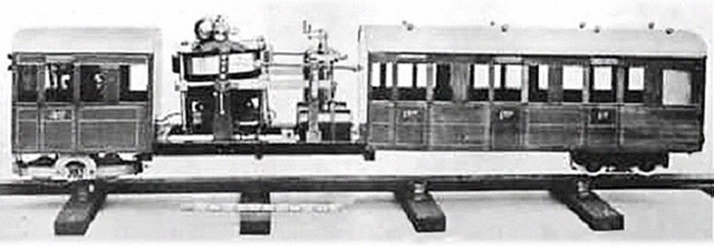 К осени 1932 года любопытствующие, заглянув за высокий забор, могли видеть уже состав из пяти вагончиков. Передний вагон получил красивый аэродинамичный обтекатель, сделавший низко сидящий над лотковой трассой поезд похожим не то на огромного червяка, не то на блестящую сине-красную змею. Над лотком размещались токоведущие трубы — не провода, как это делается сегодня. Токосъемником служила катившаяся по этим направляющим трубам каретка, гибким проводом связанная с вагоном. Труб было три, поскольку двигатели использовались трехфазные, в отличие от современных моторов постоянного тока.