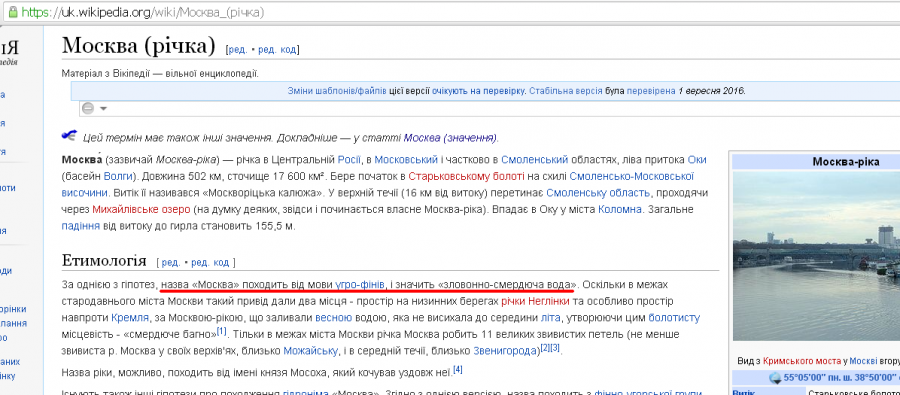 Проинспектировал тут, что в укровикипедии пишут про Москву-реку: